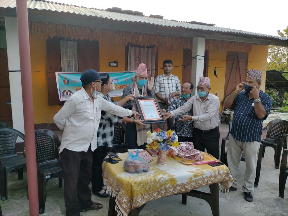 कोरोना भाइरसको संक्रमणबाट वच्न भौतिक दुरी कायम गरी झापा मेचीनगर –९ धुलावारीस्थित निवासमै गएर अग्रज साहित्यकार तेराखलाई सम्मान गरिएको उनले वताए ।