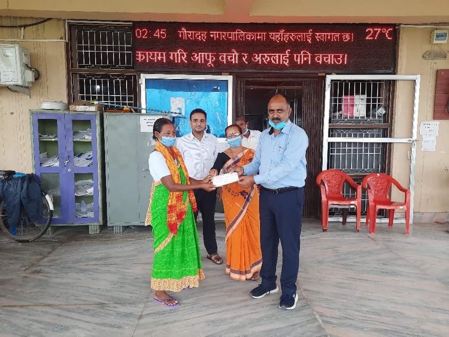 झापा, वैराती बजार टहरा निर्माण समितिका अध्यक्ष धनबीर राजवंशीको मृत्यु भएपछि उनको परिवारलाई गौरादह नगरपालिकाले ५ लाख रुपैयाँ क्षतिपूर्ति दिएको छ ।