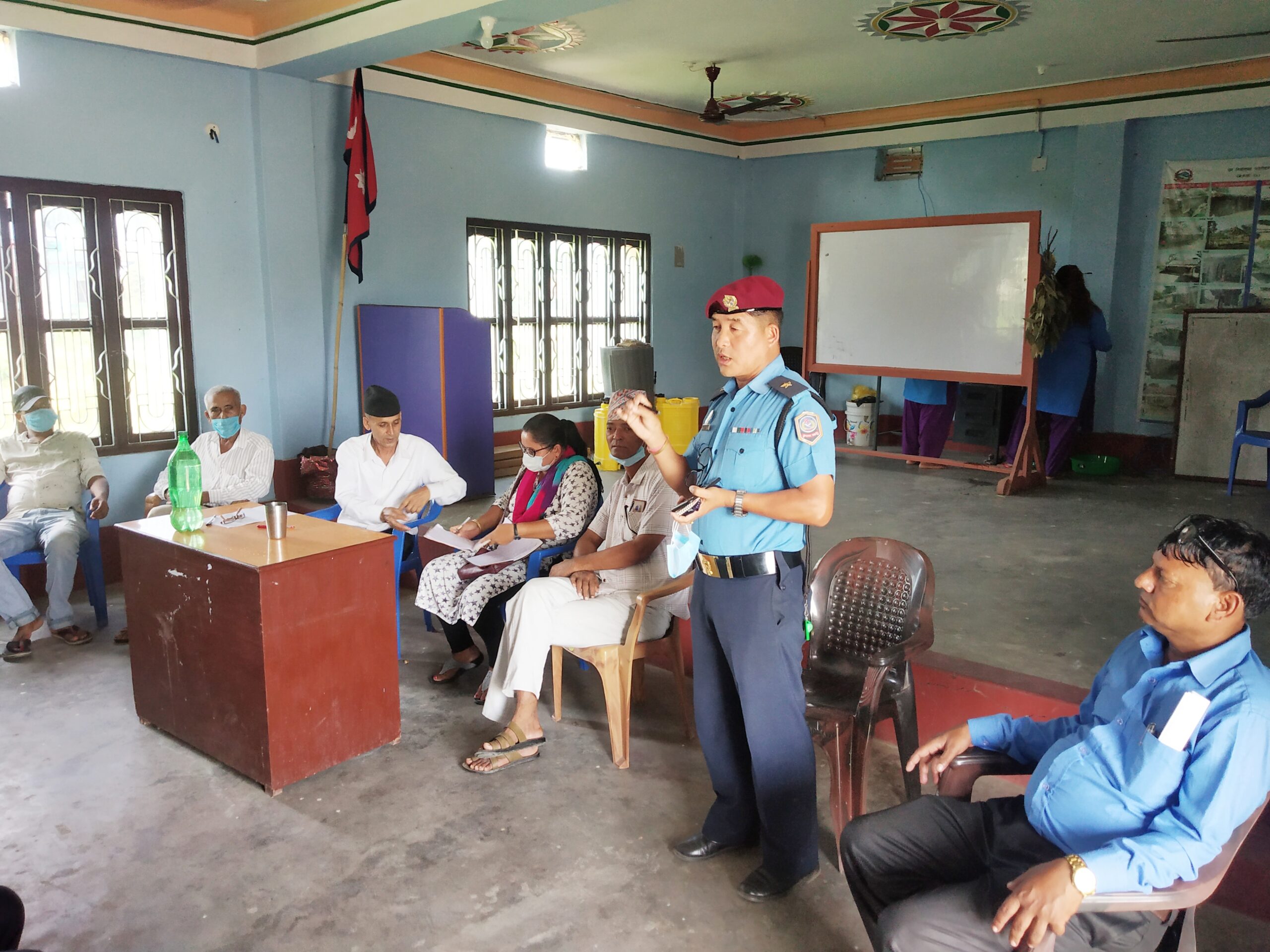 कार्यक्रममा मेचीनगर नगरपालिका १४ नं. वडाका वडा अध्यक्ष शंकर प्रसाद पोख्रेल र चारआली प्रहरी चौकीका प्रमुख किरण कुमार राईले वडाको शान्तिसुरक्षाको अवस्थाको बारेमा जानकारी गराएका थिए ।
