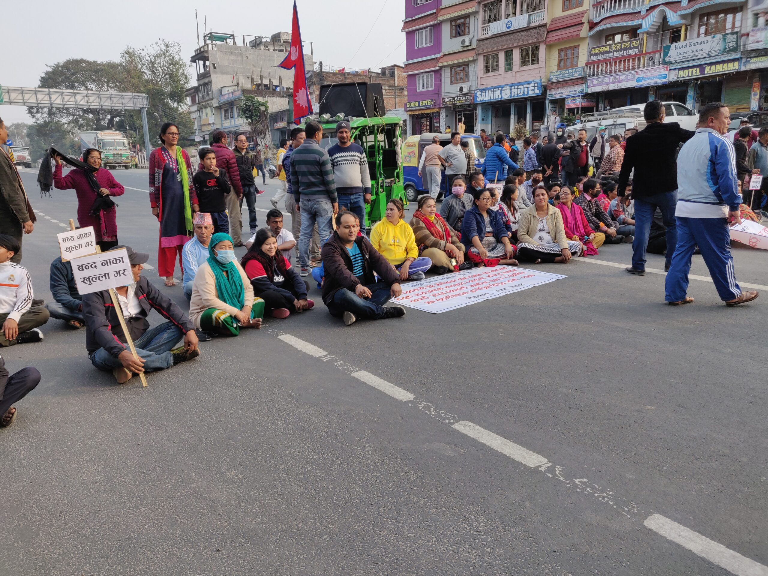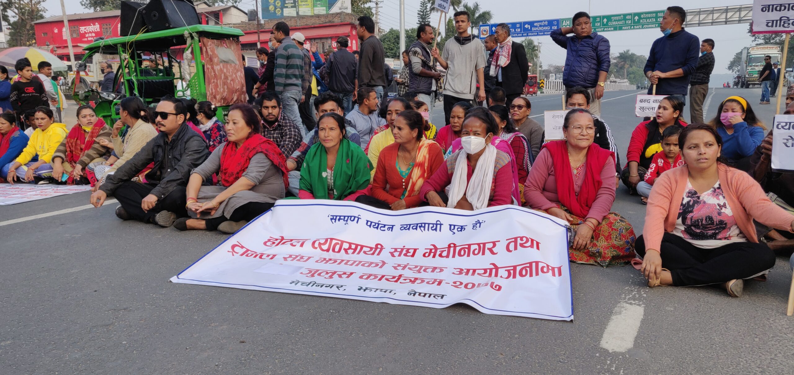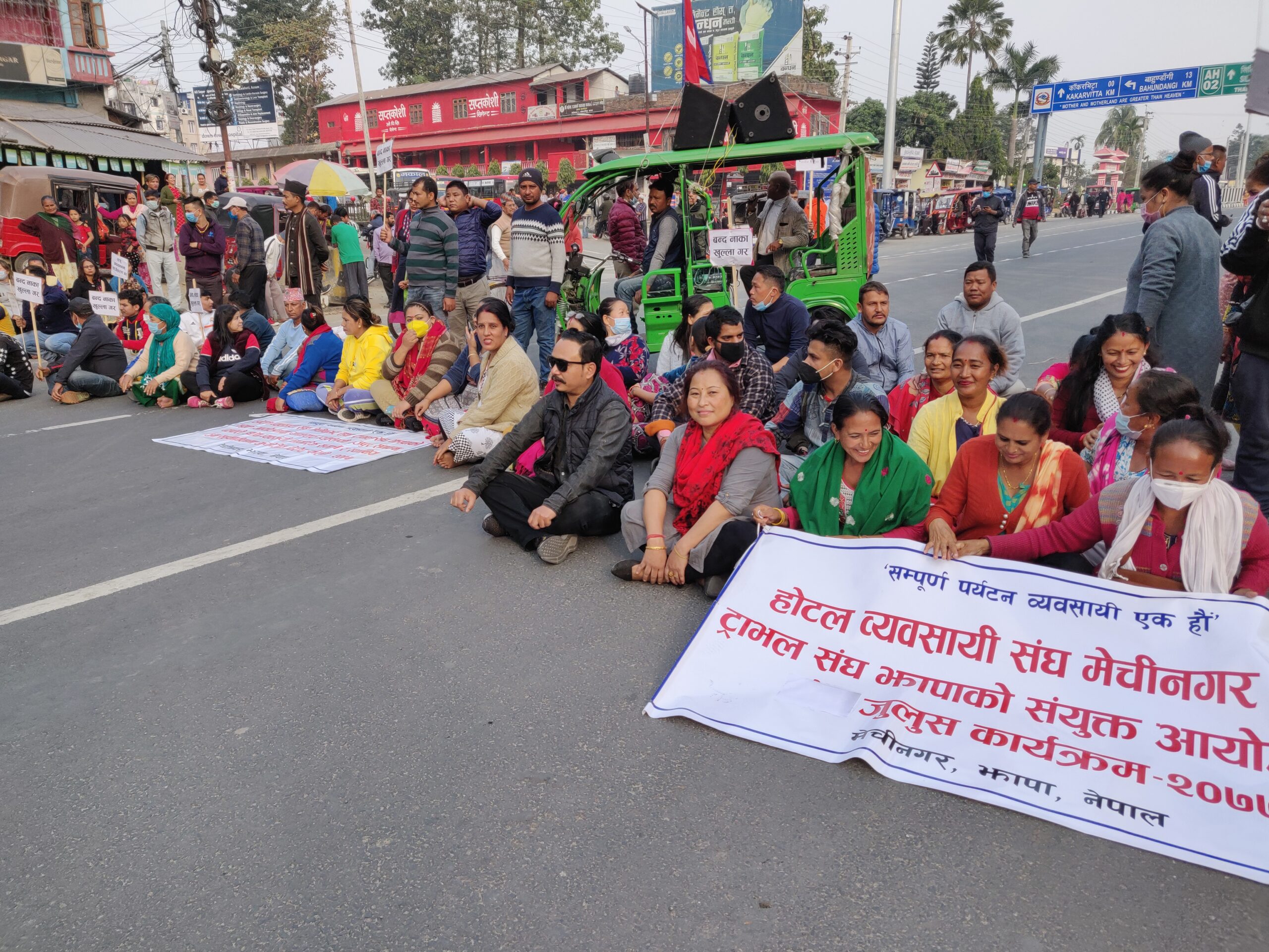 यसअघि नाराजलुस, हस्ताक्षर अभियान, ज्ञापन पत्र बुझाएर नाका खुलाउन माग गदैं आएका व्यवसायीहरुले बुधबारबाट धर्नाका कार्यक्रम शुरु गरेका छन् । बुधबार दिउसो २ बजे बसपार्कअघि बाट विभिन्न चर्का नारावाजीसहित निस्केको र्यालीले काँकरभिट्टा बजारहुदैं मेचीपुलसहित काँकरभिट्टाबजारको मुख्यःमुख्यः भागको परिक्रमा गरेको थियो । पूर्व पश्चिम राजमार्ग अन्तर्गत हिकोला अघि मुख्यः सडकमा एकघण्टा धर्ना दिएको अध्यक्ष कार्कीले बताउनुभयो ।