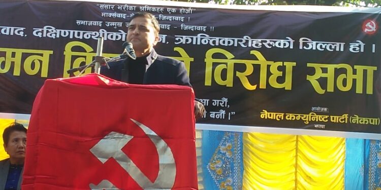 संसद विघटनविरुद्ध नेपाल कम्युनिष्ट पार्टी नेकपाले झापाको बिर्तामोडमा विरोध प्रदर्शन र सभा गरेको छ ।