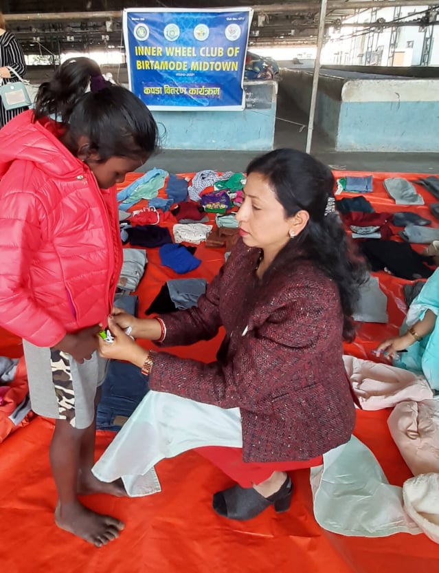 संस्थाकी भाइस प्रेसिडेन्ट जमुना भुषालले औचित्यमाथी प्रकाश पारेको कार्यक्रममा चाटर्ड प्रेसिडेन्ट भूमिका पोख्रेल , वोर्ड मेम्वर रुची शिवाकोटी ,वर्षा राजभण्डारी, रिजु क्षेत्री , कमला पौडेल लगायतले विपन्न वालवालिकालाई न्यानो कपडा , जुत्ता प्रदान गर्नुका साथै मिठाइ समेत वितरण गरेका थिए ।