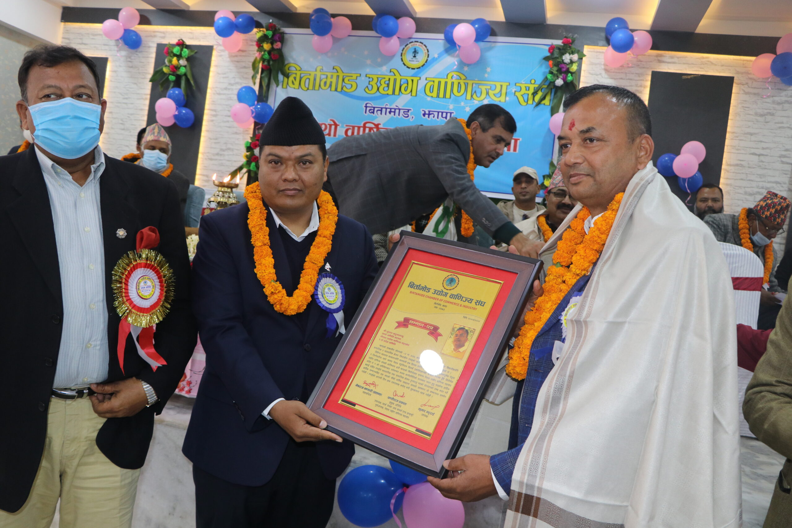 त्यस्तै कार्यक्रममा नेपाल उद्योग वाणिज्य महासंघको केन्द्रीय सदस्यमा निर्बाचित उमेश डालमिया ,नरेन्द्र खड्का , नेपाल उद्योग वाणिज्य महासंघको प्रदेश नं.१ को अध्यक्षमा निर्वाचित टीकाराज ढकाल , सदस्यमा निर्वाचित भुपालराज कटुवाललाई सम्मान गरिएको थियो । उनीहरुलाई दोसल्ला र सम्मान पत्र प्रदान गरिएको बिर्तामोड उद्योग वाणिज्य संघका सदस्य सञ्जीव घिमिरेले जानकारी दिए ।