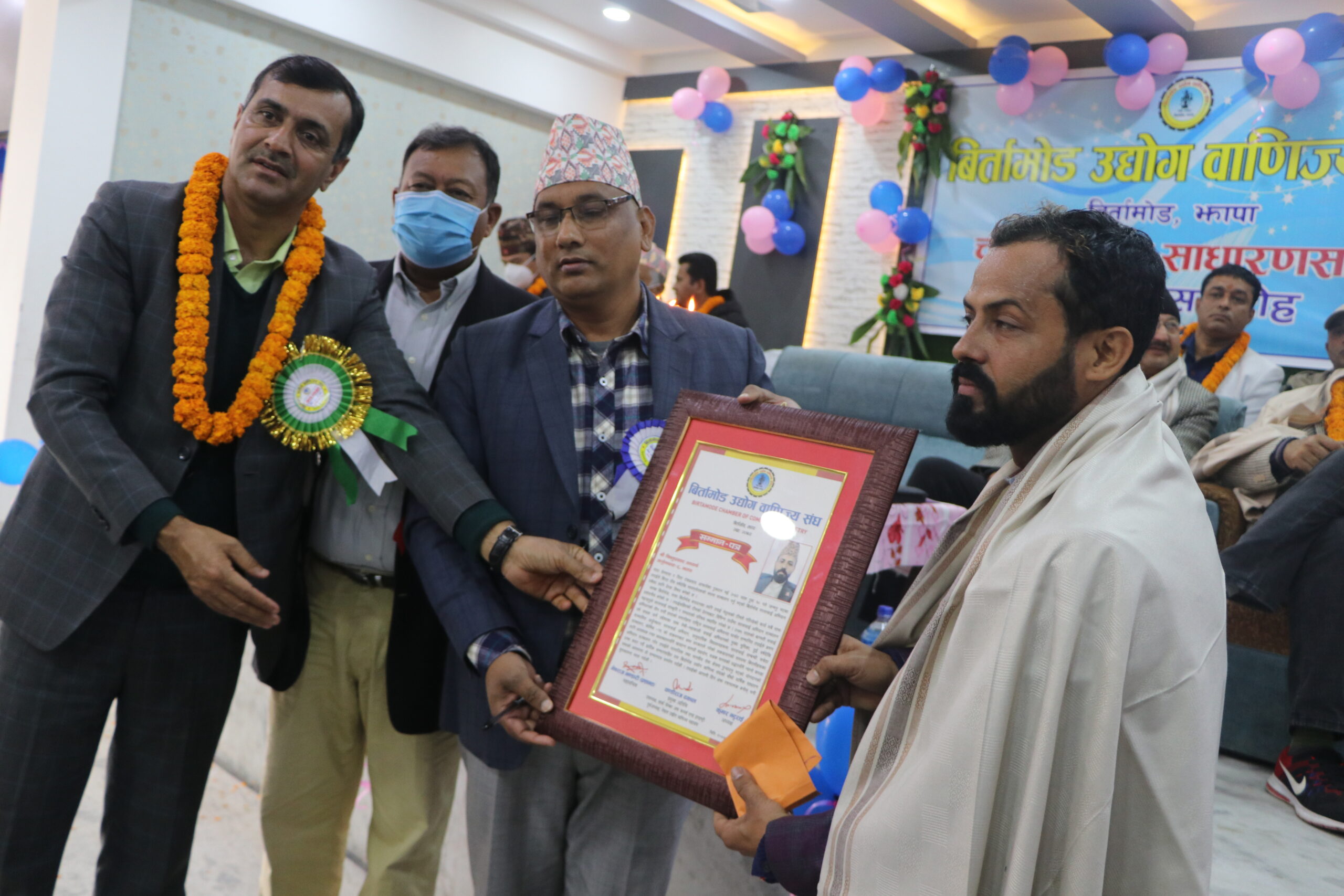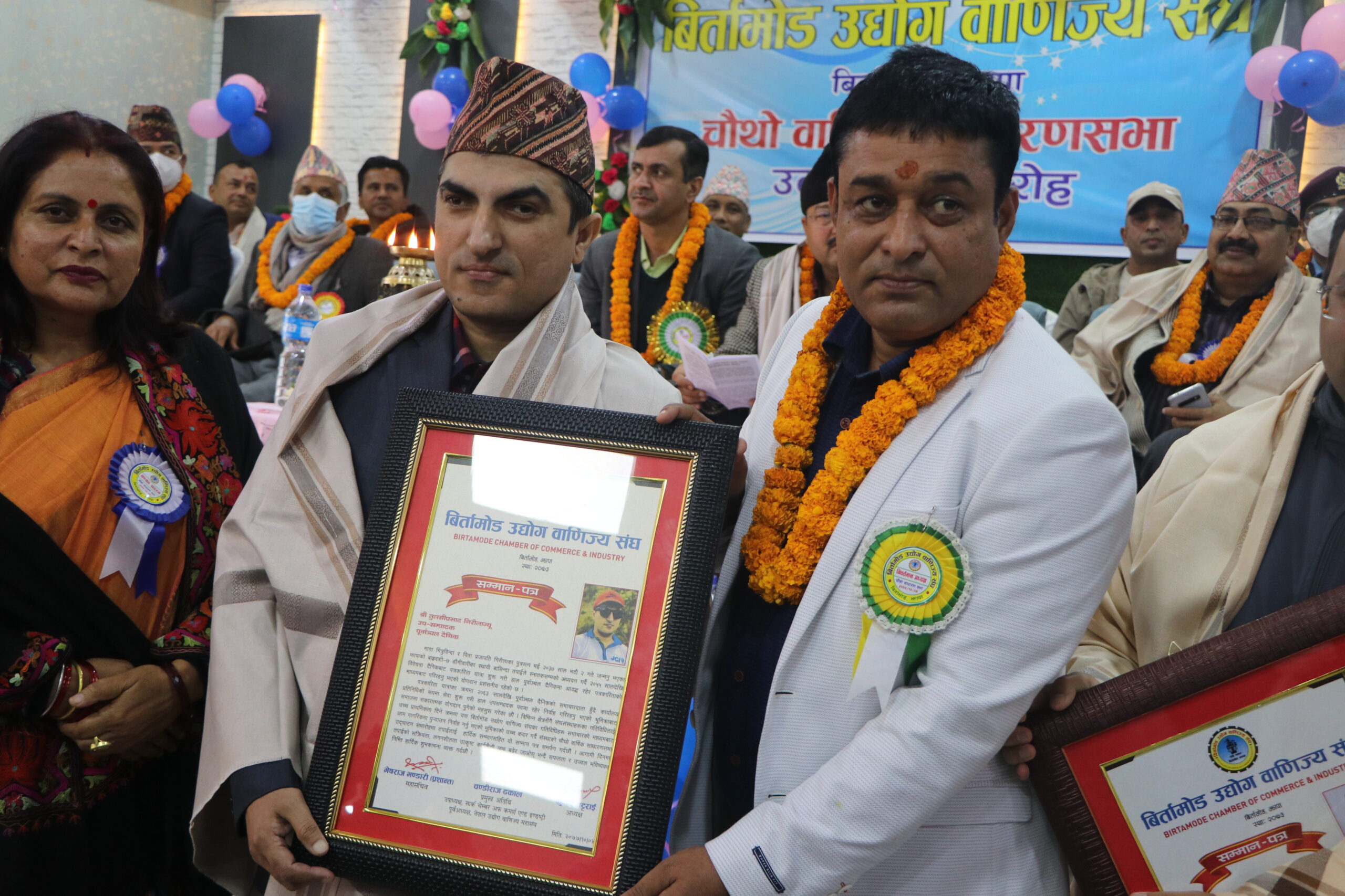 बिर्तामोड उद्योग वाणिज्य संघको चौथो वार्षिक साधारण सभाको उद्घाटन सत्रमा उपसम्पादक निरौलासहित सात जनालाई सम्मान गरिएको हो ।