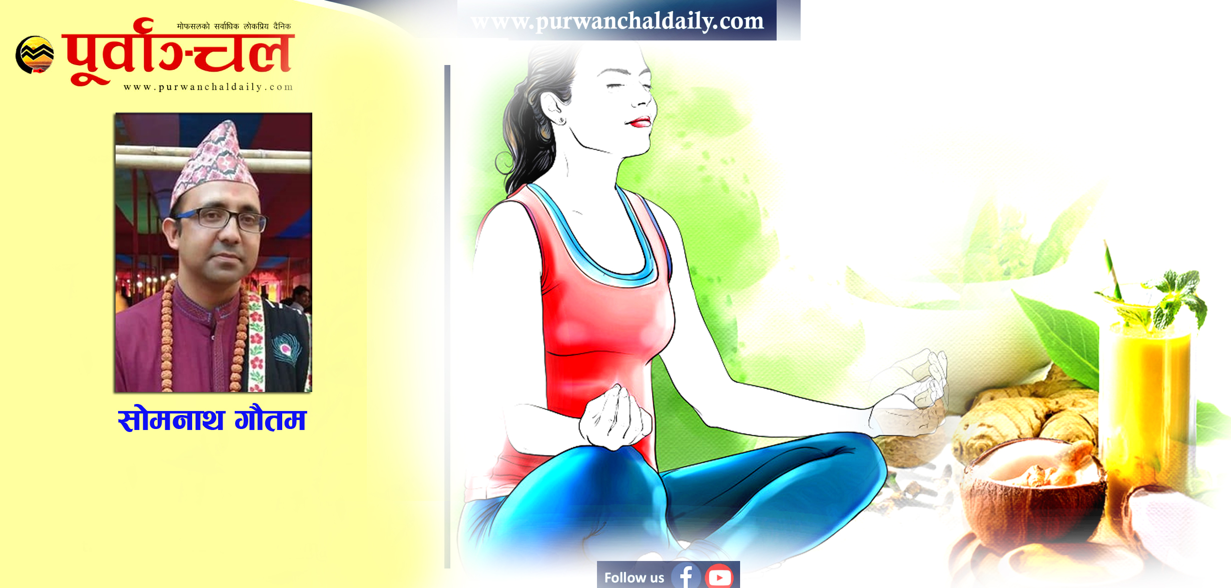 मानवलाई जीवनयापन गर्न सबल र स्वस्थ आहाराको आवश्यकता पर्दछ । जीवनलाई सकारात्मक सक्षम र सबल बनाउन सद्विचारको आवश्यकता पर्दछ भने सद्विचारलाई स्थिरीकरणका लागि स्वस्थ, अग्र्यानिक, शाकाहारी मानवीय आहारको आवश्यकता पर्दछ । हाम्रा शरीरका सम्पूर्ण अवयवले काम गर्न सक्ने क्षमता हामीले खाएको आहाराद्वारा नै प्राप्त हुन्छ । आहाराले नै शरीरलाई स्वस्थ राख्ने गर्दछ । मनको स्थिति पनि आहारा अनुसार हुने भएकाले ‘यथा अन्नं तथा मन’ भन्ने गरिएको छ । शास्त्रहरुमा आहाराका विषयमा निकै बहस र विश्लेषण गरिएको छ । जीवन परिवर्तन गर्न चाहने व्यक्तिले आहार बदल्न अत्यन्त आवश्यक छ । किनभने प्रकृतिमा वस्तुशक्तिले ज्ञानको अपेक्षा राख्दैन । यसको तात्पर्य सन्त, ज्ञानीले मदिरा पिए पनि मदिराले आप्mनो मताउने क्षमता देखाएरै छोड्दछ । खोर्सानीले पीरो, कागतीले अमिलो, नीमले तीतो जस्ता प्राकृतिक गुणहरु बालक, वृद्ध, ज्ञानी, मूर्ख सबैलाई समान रुपमा आ–आफ्नो गुण देखाएर छोड्दछन् । आहाराले मानवलाई चयन गर्दैन, आहार मानवले चयन गर्नुपर्दछ । मदिरा, गाजा चरेस, अफिम जस्ता पदार्थको सेवनले मानवको मनस्थितिलाई आकुल–ब्याकुल बनाउँछ अनि भाषा र व्यवहार उपद्रव बन्न पुग्दछ । तर, खीर–मिठाइ जस्ता खानेकुरा खाएका व्यक्तिले प्रायः उपद्रव गरेको देखिँदैन । त्यसैले जीवन परिवर्तन गर्न आहार चयन महत्वपूर्ण कुरा हो । आहारा सात्विक, राजस र तामस गरी तीन प्रकारको शास्त्रमा ब्याख्या गरिएको पाइन्छ । श्रीमद्भगवद्गीताको १७ अध्यायमा निम्न अनुसार सात्विकी राजसी र तामसी आहार अथवा भोजनको बारेमा चर्चा गरिएको छ ।