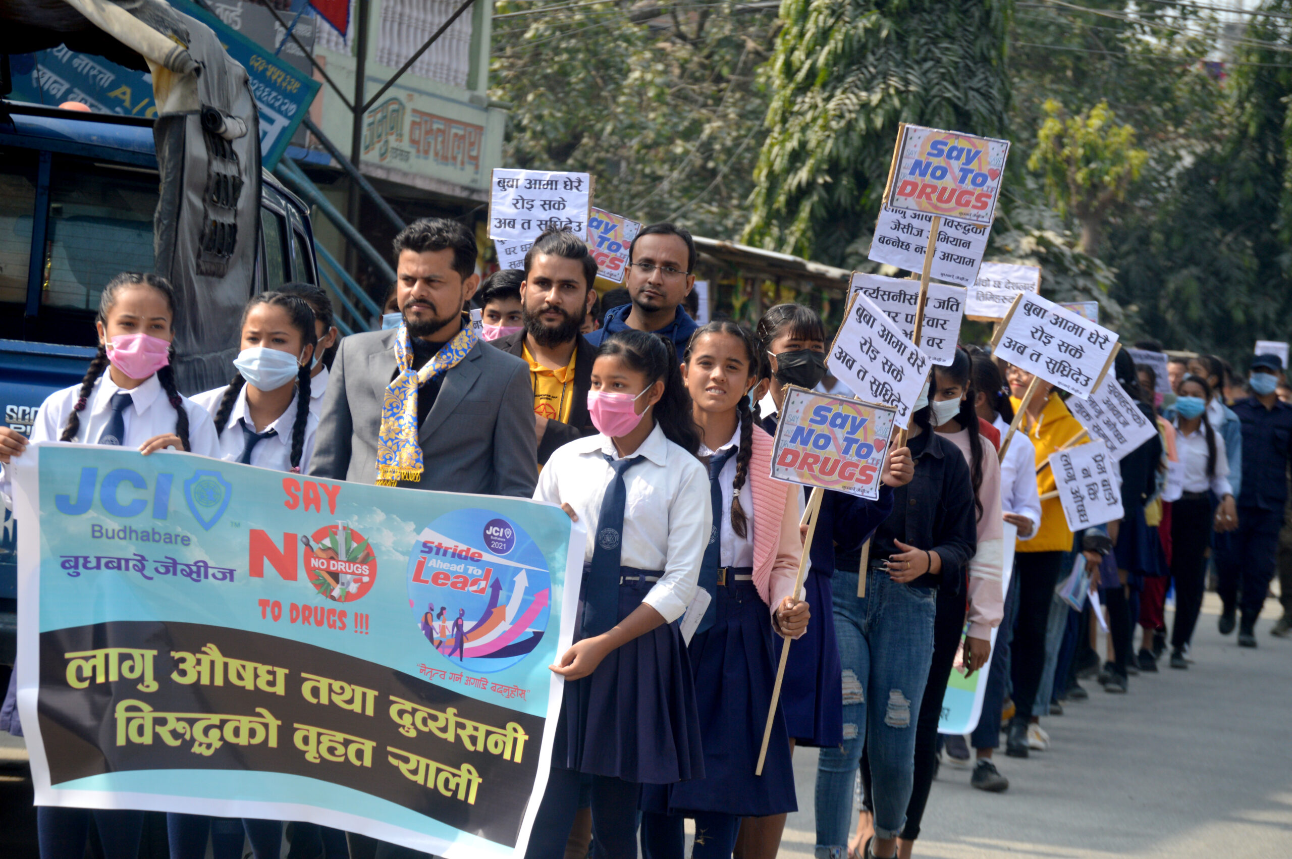 त्यस्तै बुद्धशान्तिमा लागुऔषध प्रयोगकर्ता बढ्न थालेपछि त्यसको न्युनिकरणका लागि शनिबार बुधबारे जेसीजले बृहत ¥याली सम्पन्न गरेको छ । करीव ३ सय बढीको सहभागिता रहेको ¥यालीमा विभिन्न विद्यालयका विद्यार्थी, शिक्षक, इलाका प्रहरी कार्यालयका प्रहरी प्रमुख सहित प्रहरीहरु, स्वास्थ्यकर्मी, सञ्चारकर्मी, संघसंस्थाका प्रतिनिधि, बुधबारे जेसीजका पदाधिकारीको सहभागिता थियो ।