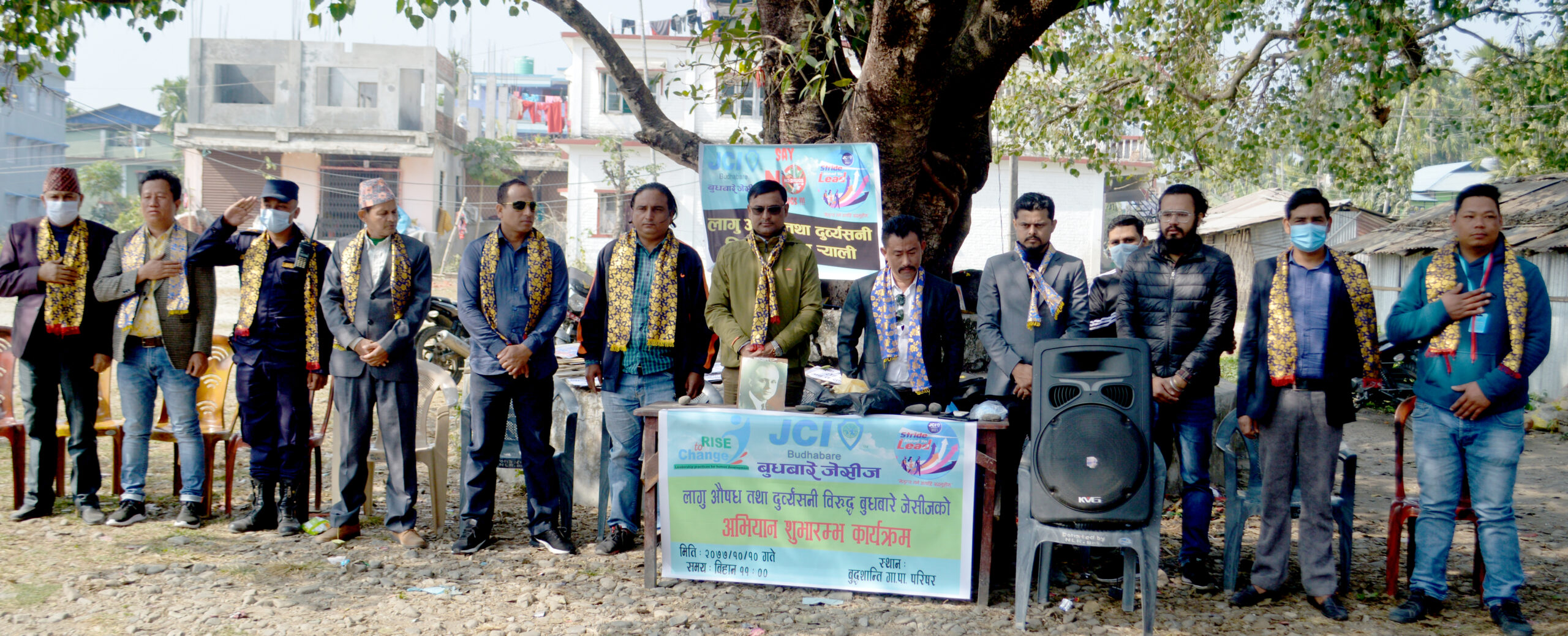 बुधबारे जेसीजले लागुऔषध तथा दुव्यसनी विरुद्धको अभियान सुभारम्भ गरेको छ । शनिबार बुद्धशान्ति गाउँपालिकाको परिसरमा विशेष कार्यक्रमको आयोजना गरि अभियान सुभारम्भ गरिएका हो ।