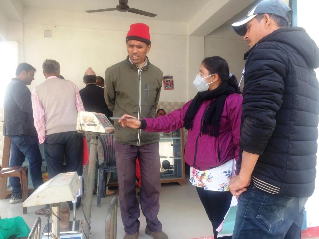 गुणस्तर तथा नापतौल कार्यालय झापाका सहायक निरिक्षक अनुजा घिमिरे, सिनियर मिस्त्री विजयनन्द चौधरी र कार्यालय सहयोगी पूना घिमिरे रहेको डोर टोलीले व्यवसायीहरुको काँटा, ढक, तराजु र डिजिटल काँटाहरुको गुणस्तर तथा नापतौल जाँचसँगै दर्ता नविकरण गरेका थिए ।