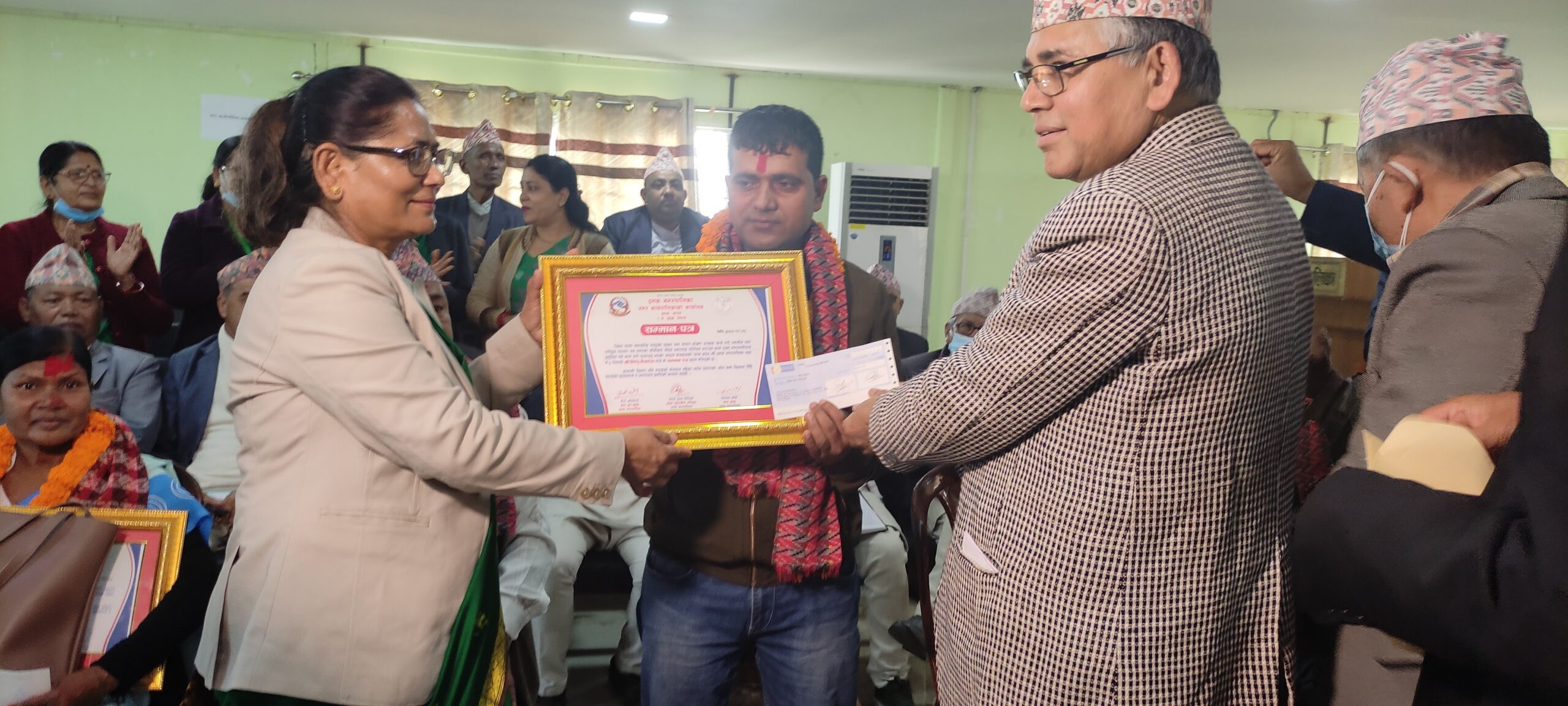 राष्ट्रिय सभा सदस्य देबेन्द्र दाहाल,प्रदेश सभा सदस्य अर्जुन राईको उपस्थितिमा भएको नगर सभामा दमक नगर प्रमुख रोमनाथ ओली, उपप्रमुख गीता अधिकारीले पुरस्कार सहित नगरपालिकाको तर्फबाट सम्मान गरेका थिए ।