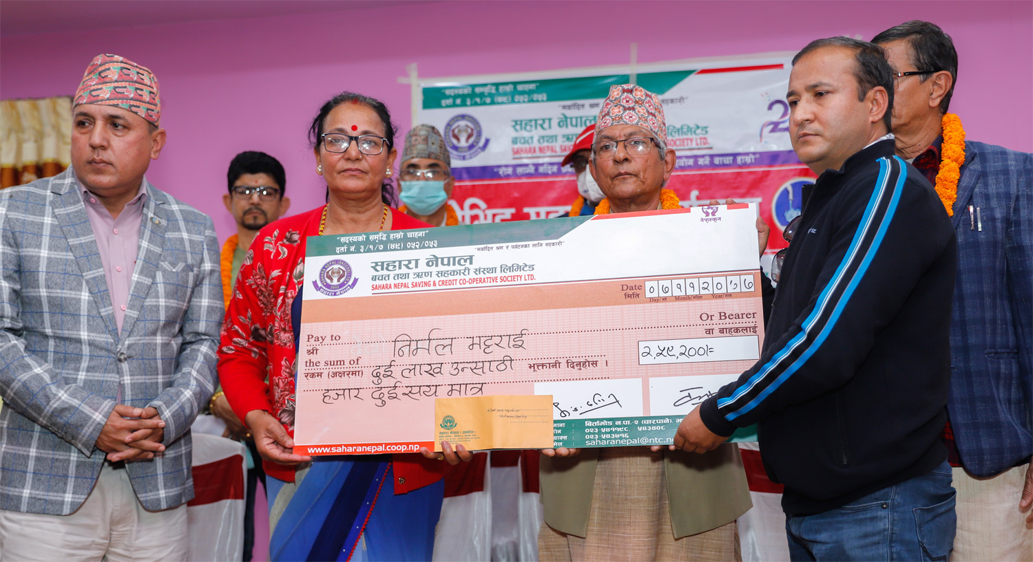 देशकै ठूलो सहकारी संस्थाको रुपमा परिचित झापाको सहारा नेपाल बचत तथा ऋण सहकारी संस्थाले आफ्ना शेयर सदस्यहरु समक्ष कोभिड सहायता कार्यक्रम सम्पन्न गरेको छ ।