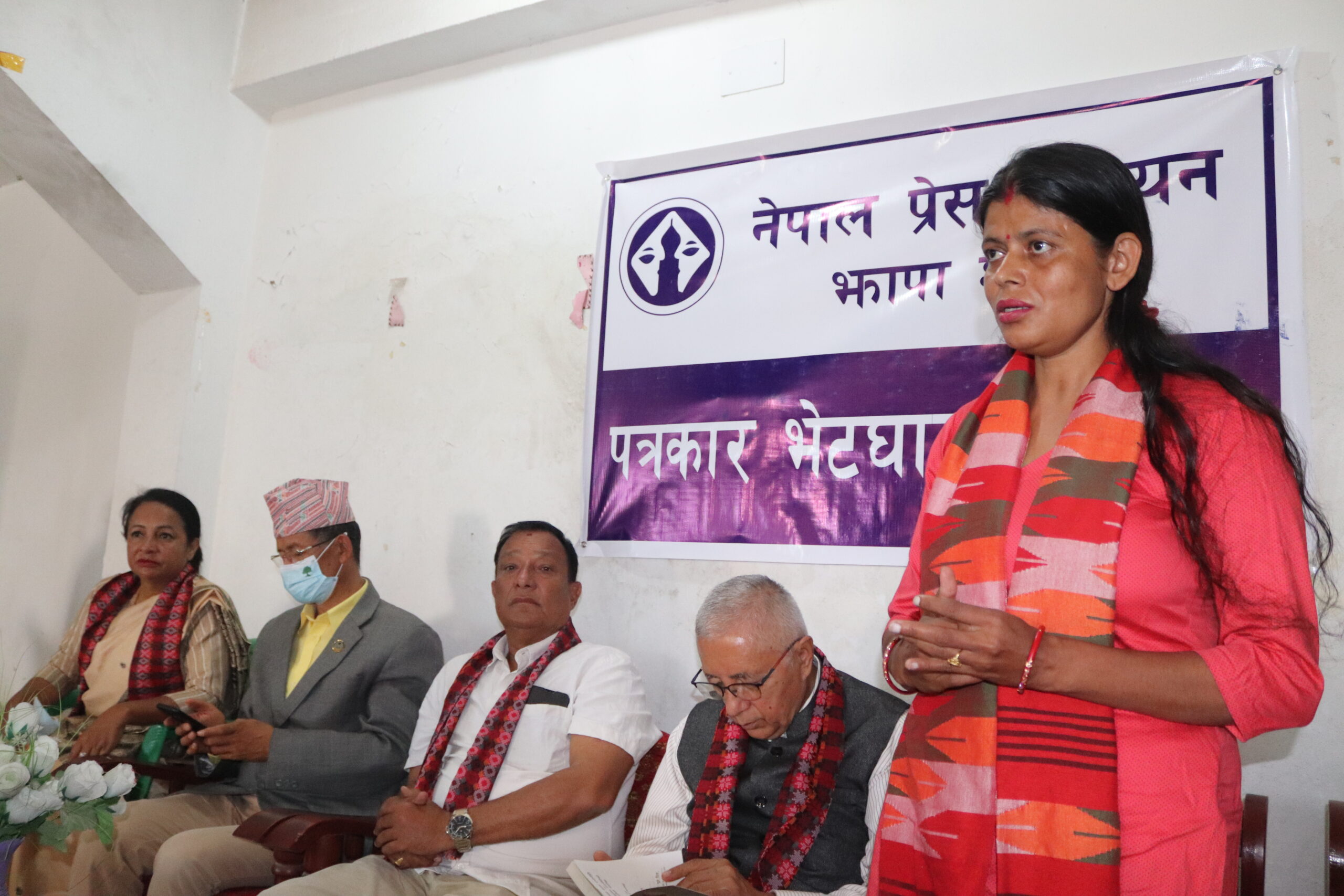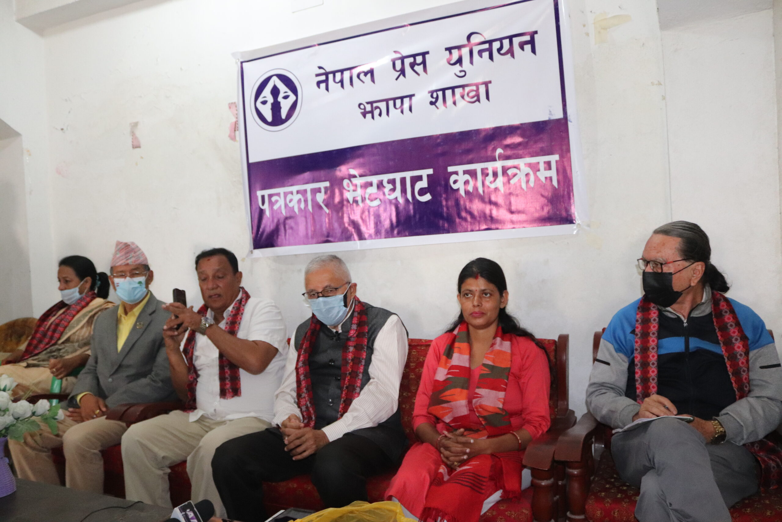 नेपाल प्रेस युनियन झापाका सभापति इन्दु पूर्वेलीको सभापतित्वमा सम्पन्न पत्रकार भेटघाटमा स्वागत पूर्व केन्द्रीय सदस्य कृष्ण हुमागाँई र सञ्चालन सल्लाहकार राजेन्द्र गौतमले गर्नुभएको थियो ।