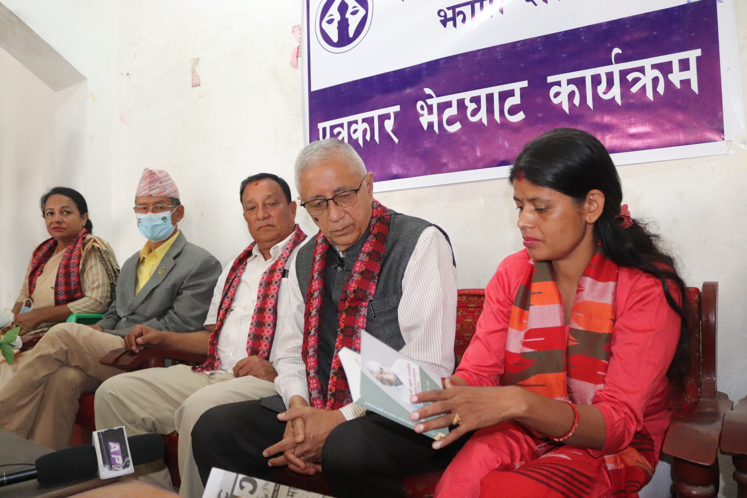 नेपाल प्रेस युनियन झापाका सभापति इन्दु पूर्वेलीको सभापतित्वमा सम्पन्न पत्रकार भेटघाटमा स्वागत पूर्व केन्द्रीय सदस्य कृष्ण हुमागाँई र सञ्चालन सल्लाहकार राजेन्द्र गौतमले गर्नुभएको थियो ।