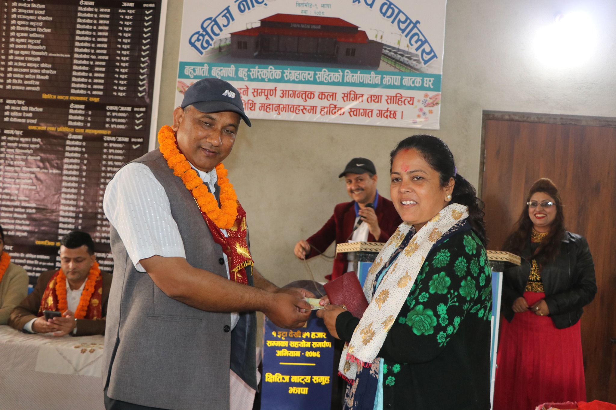 सोही कार्यक्रममा झापा नाटक घरका लागि बिर्तामोडकी महिला नेतृ रञ्जु प्याकुरेलले एक हजार एक सय रुपैयाँ र श्रीराम ग्रील एण्ड कम्पनिका सञ्चालक रामकुमार खरेलले चार हजार रुपैयाँ मूल्य बराबरको बोर्ड प्रदान गरेका थिए ।