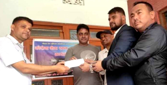 युनियनको माइपश्चिम क्षेत्रीय समिति दमकले दमकको प्राप्ति अटो र रोजियट अंग्रेजी बोर्डिङ स्कूलको सहकार्यमा कोरोना संक्रमित भएका पत्रकार विष्णु पौडेललाई बिमा वापतको एक लाख रुपैयाँ रकम प्रदान गरेको हो ।