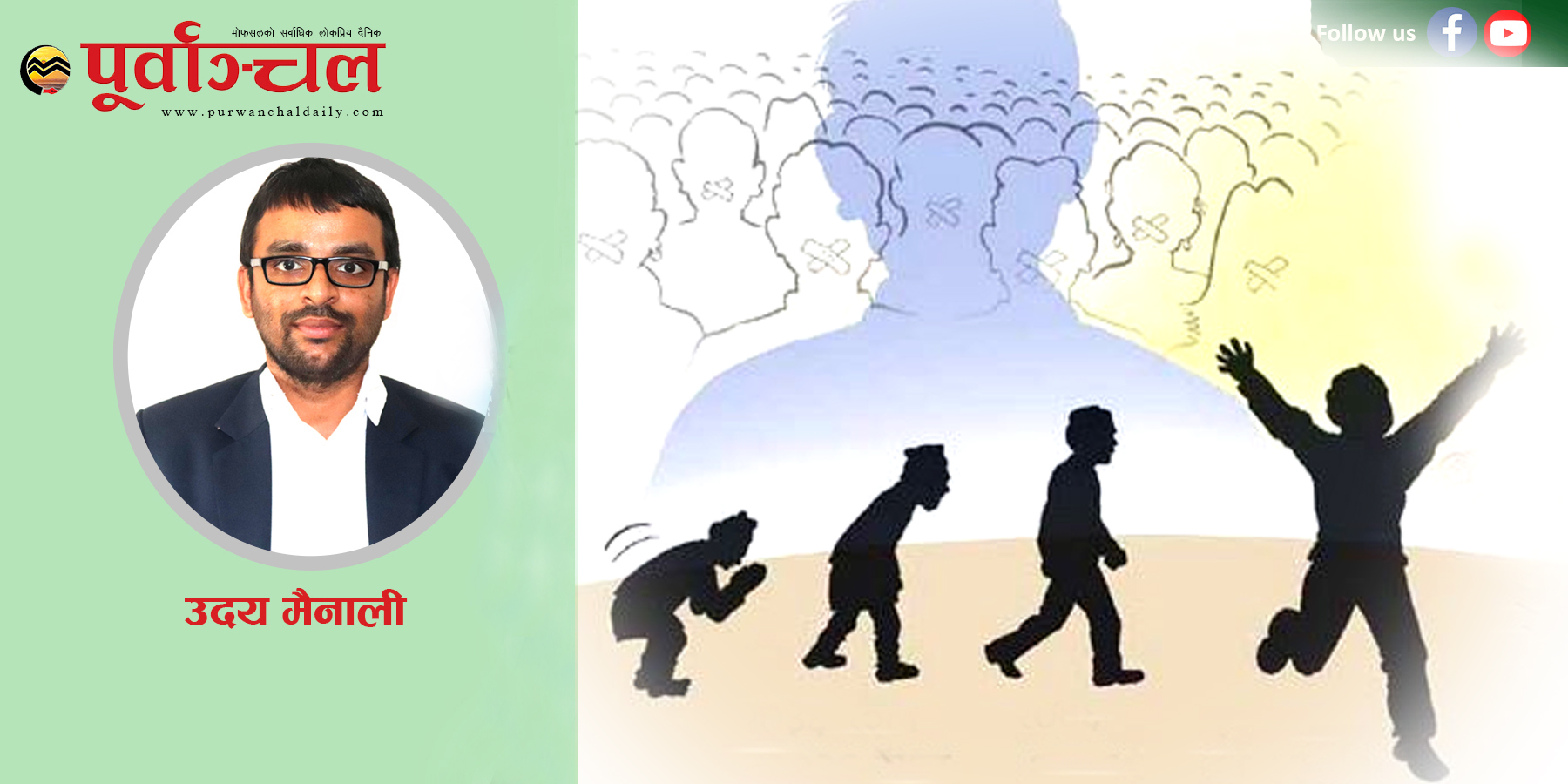 फिनल्याण्डमा ३४ वर्षीय युवा सान्ना मरिन्ना प्रधानमन्त्री हुँदा सामाजिक सञ्जाल भरिने गरी बधाई दिँदै नेपालमा कहिले यस्तो अवस्था आउला भनेर चिन्ता प्रकट गर्ने, तर आफ्ना पार्टीका ७० वर्ष पुगेका नेतालाई प्रश्न गर्न नसक्ने समाज हो –नेपाली समाज । मानवअधिकार र सामाजिक न्यायको पक्षमा माइतीघर मण्डलामा दिनभर उफ्रने, तर कुख्यात अपराधीको पक्षमा खुलेआम वकालत गर्न अलिकति पनि नहिच्किचाउने समाज हो –नेपाली समाज । सबै समस्याको जड संस्कारविहीन राजनीति र असक्षम नेतृत्व हो र यसलाई नसुधारी देश विकास हुँदैन भन्दै गर्जने, तर पार्टीले ढुङ्गाको मूर्ति जस्तो व्यक्ति चुनावमा उठाए पनि त्यसैको समर्थनमा मतदान गर्ने बाहुल्य भएको समाज हो । पुँजीवादी दलाल प्रवृत्तिको सकेसम्म विरोध गर्ने, तर आफैं पुँजीपति बन्न चाहने विरोधाभाषी चरित्र भएका मानिसहरु बसोबास भएको समाज हो ।