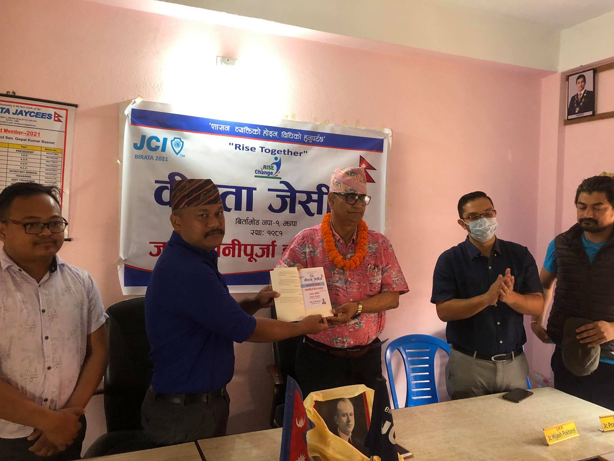 वीरता जेसीजका अध्यक्ष धिमालको अध्यक्षता तथा बिर्तामोड नगरपालिकाका मेयर धुव्रकुमार शिवाकोटीको प्रमुख आतिथ्यमा भएको कार्यक्रममा वीरता जेसीजका अन्तर शाखा समन्वय संयोजक तथा कार्यक्रम संयोजक जीवनकुमार खड्काले स्वागत गरेका थिए ।