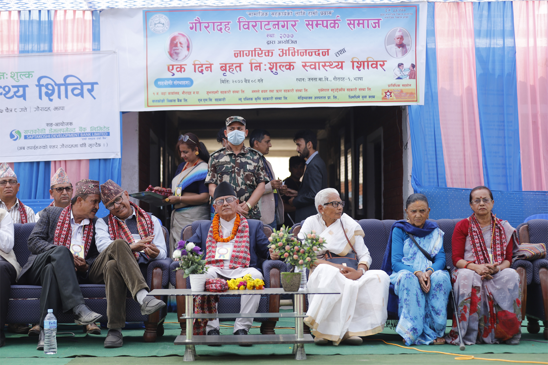 गौरादह–विराटनगर सम्पर्क समाजको आयोजनामा आयोजित सोही अवसरमा सञ्चालित स्वास्थ्य शिविरमा सयांैले स्वास्थ्य सेवा लिएको आयोजक समितिका संयोजक दिलीप भण्डारीले जानकारी दिए । आइतबार जनता माध्यमिक विद्यालयको प्राङ्गणमा समाजका अध्यक्ष इन्द्र न्यौपानेको अध्यक्षता र प्रदेश १ प्रमुख सोमनाथ प्यासी अधिकारीको प्रमुख आतिथ्यमा कार्यक्रम भएको थियो ।