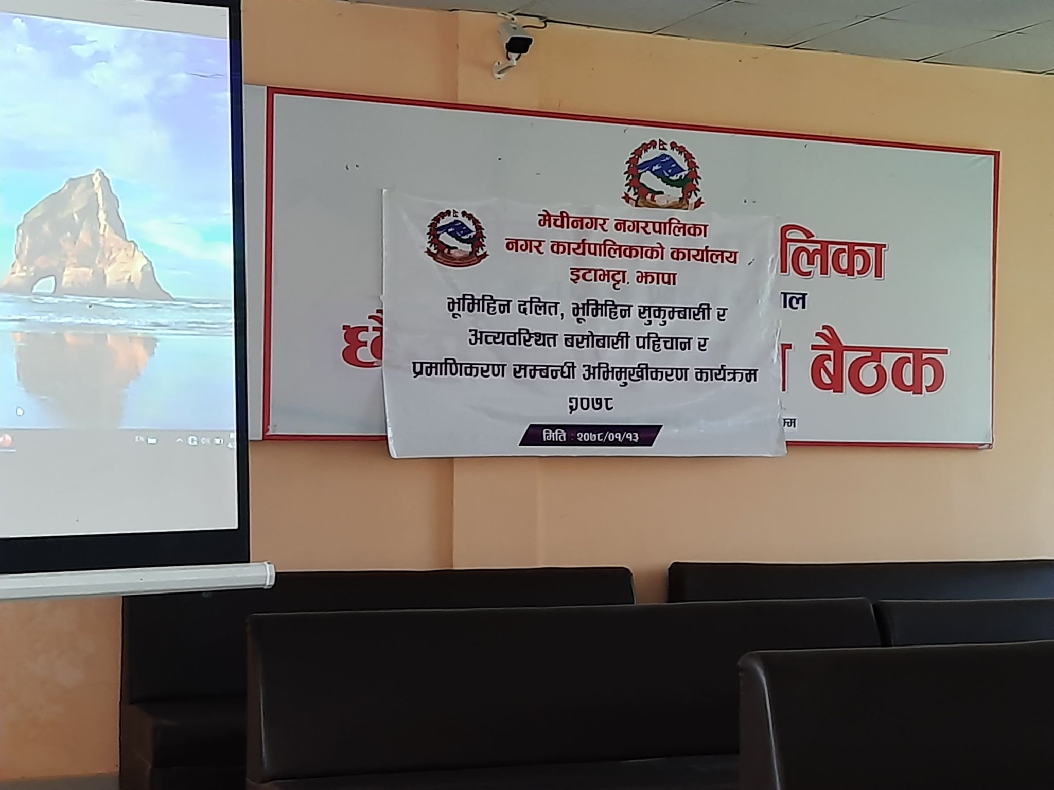 मेचीनगर नगरपालिका प्रमुख विमल आचार्यको सभापतित्वमा नगरपालिकाको सभाकक्षमा आयोजित अभिमुखीकरणमा भूमिहीन दलित, सुकुम्बासी तथा अव्यवस्थित बसोबास गरिरहेका व्यक्तिको प्रमाणसहितका निवेदन, फारम भर्ने, तथ्याङ्क संकलन गर्ने, नापजाँच यसका प्रक्रियाका विषयमा समेत जानकारी गराईएको विज्ञ सदस्य राधाकृष्ण खनालले बताउनुभयो । उहाँले कुनै एक व्यक्तिको एकभन्दा बढी जिल्लामा ऐलानी जग्गा भए उस्ले एकातर्फको छाडेर आफुले बसोबास गरिरहेको जिल्लामामात्र फारम भर्न पाउने बताउनुभयो । एउटै जिल्लाभित्र एक वा एकभन्दाबढी पालिकामा समेत ऐलानी जग्गा भए बसोबासका आधारमा फराम भर्नुपर्ने जानकारी गराउनुभयो ।